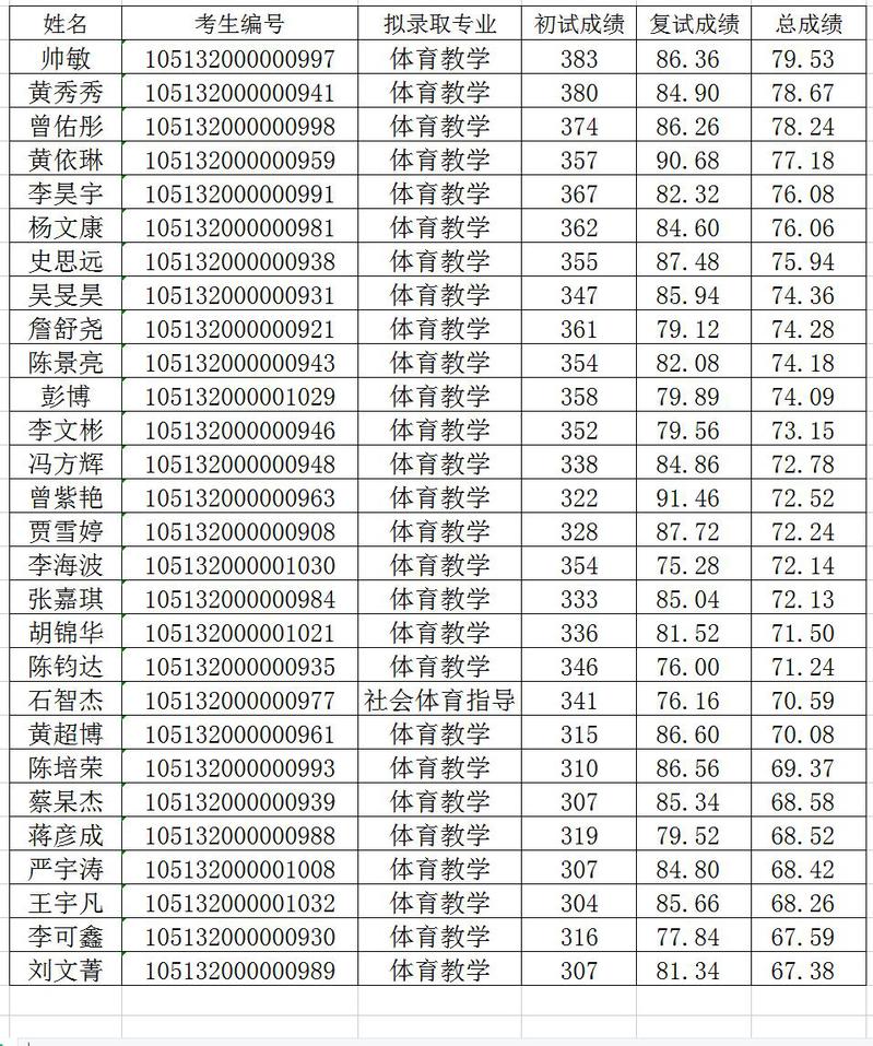 根据教育部关于印发《2022年全国硕士研究生招生工作管理规定》(教学函〔2021〕2号)的通知等文件精神,经学院对考生进行综合考核,研究生院审核,根据各专业考生总成绩(初试成绩和复试成绩加权)排名,拟录取帅敏等28名考生为公司2022年全日制硕士研究生(退役老员工士兵专项计划拟录取考生另行公示),现将名单公示如下表。公示期为2022年4月5日-2022年4月14日。公示期间,考生若有疑问,可向公司有关部门反映。