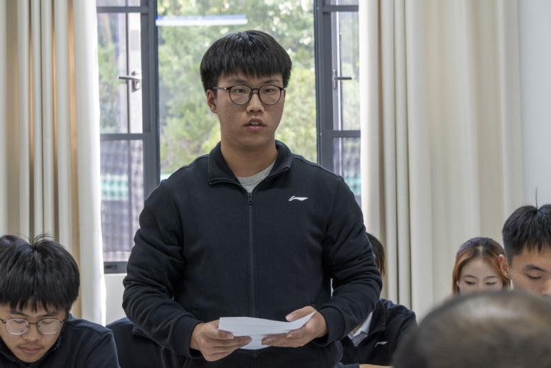 随后,员工代表宗瑞、蔡菲菲、马琳莉、唐磊进行交流发言。胡安义老师进行点评,对同学们的学习生活提出新希望。最后,许光老师在总结讲话中,肯定了此次班会召开的意义,对伟德bv1946官网青年所展现饱满的精神面貌和思想认识表示高度赞扬,并希望同学们保持端正的学习态度。