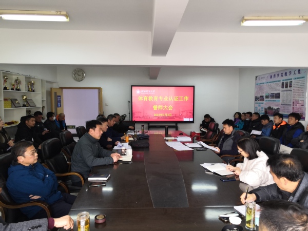 本网讯(唐秀庚 摄影/报道)3月2日下午,伟德bv1946官网在体育馆2楼会议室召开体育教育专业认证工作誓师大会。伟德bv1946官网全体教职工参加会议。