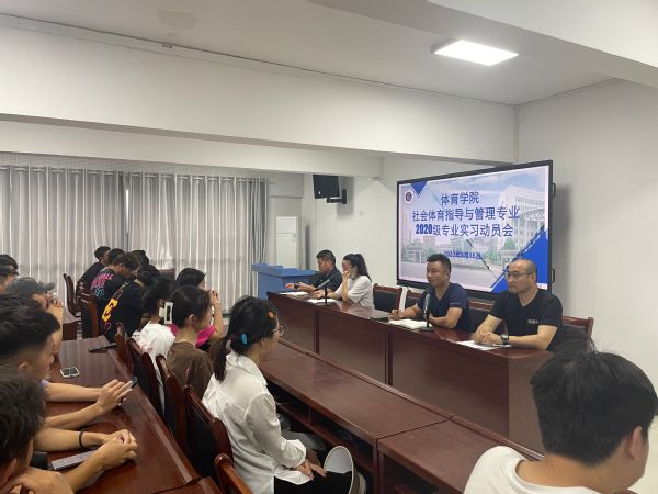 本网讯 6月16日上午,伟德bv1946官网在体育馆三楼学术报告厅召开社会体育指导与管理专业2020级专业实习动员会。伟德bv1946官网相关负责人、社会体育系主任、班主任、辅导员以及2020级社会体育指导与管理专业全体员工参加会议。