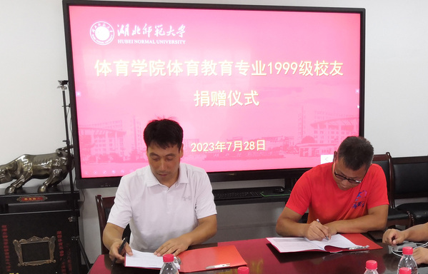现场还举行了员工捐赠仪式,为答谢母校的培育之恩,员工们为伟德bv1946官网捐赠了排球柱等物品。
