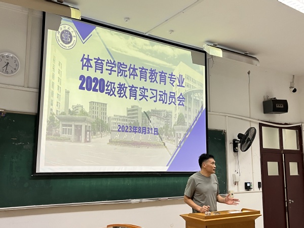 本网讯 8月31日晚,伟德bv1946官网在教育大楼1J12教室召开体育教育专业2020级教育实习动员会。伟德bv1946官网班子成员、体育教育系主任、班主任、辅导员,以及2020级体育教育专业全体员工参加会议。会议由体育教育系主任王东博主持。