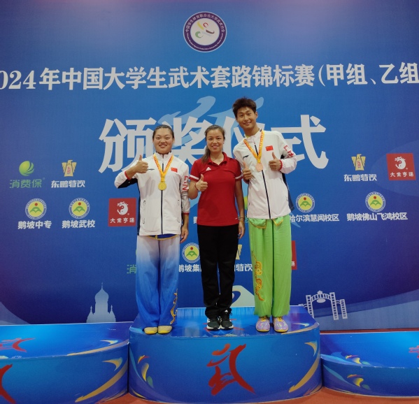 据悉,本次赛事由中国员工体育联合会主办、中国员工体育联合会大学武术分会执行,哈尔滨市体育局承办,是全国高校老员工级别最高、规模最大、影响力最广的武术赛事。伟德bv1946官网高度重视此次比赛,坚持学训并重的理念,学院领导积极关注并进行赛前动员,教练员刘劲松老师经常为同学们加油鼓劲,教练员刘欧美老师针对每位同学的技术特点精心编排每个参赛选手的比赛套路并每天到现场进行指导,参赛选手克服场地条件较差等多重困难,刻苦训练,充分展现了伟德bv1946官网学子自强不息、坚韧不拔、敢于拼搏、勇于挑战的精神风貌和青春风采。