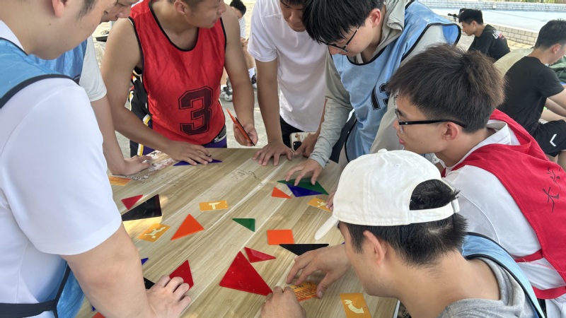 活动伊始,所有参与活动的同学开始热身小游戏“破冰分组”,随后进入本次拓展活动的游戏体验环节,游戏采用小组积分赛的形式开展,分别进行“达芬奇密码”、“同心鼓”、“七巧板挑战”三个趣味比赛项目。每个游戏开始之前同学们都先进行了讨论,分工有序后再开始挑战。游戏过程刺激有趣,调动了同学们的积极性,更锻炼了优化策略的能力和团结协作的精神。在每一次游戏项目的体验中,大家都不遗余力、积极配合、追求卓越。运动场上,同学们的笑声、掌声、欢呼声交织成一首激昂的交响曲,展示了体院员工良好的精神风貌和青春活力。