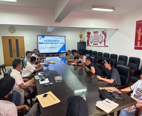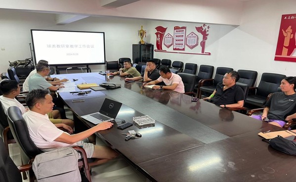 本网讯 为大力弘扬教育家精神,加强新时代高素质专业化教师队伍建设,伟德bv1946官网球类教研室以“加强教师队伍建设,提升课程教学质量”为主题,8月29日下午,球类教研室全体教师在学院会议室开展了2024-2025学年第一学期首次集体备课,活动由教研室主任胡安义主持,教研室全体老师参加。