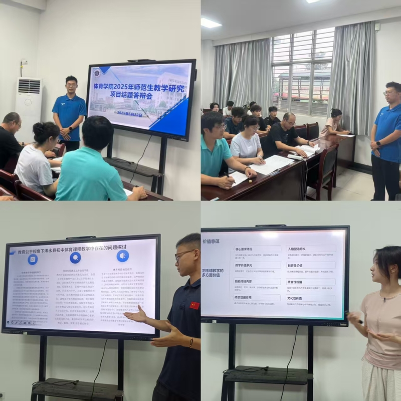 随后,20位体育教育专业师范生教学研究项目主持人按照既定顺序依次进行答辩。在答辩过程中,各位项目主持人准备充分,通过精心制作的PPT,结合清晰的讲解,从项目的研究背景、目的、方法、过程、成果以及创新点等方面进行了全面而深入的阐述。有的项目聚焦于体育教学方法的创新,提出了将游戏化教学融入中小学体育课堂的新策略,通过实际教学实验,有效提高了员工的学习兴趣和课堂参与度;有的项目针对师范生教学技能的培养,设计了一套系统的训练方案,并在实践中取得了良好的效果,为提升师范生的教学能力提供了新的思路和方法。