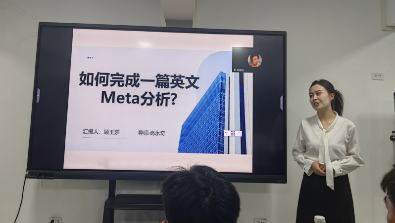 报告会特邀两位研一学术新锐进行专题分享。体育心理学方向顾玉莎同学以《英文META分析写作的系统化路径》为题,结合其已发表的SSCI论文案例,独创性提出“三维选题评估模型”,详细演示PRISMA框架在体育心理学领域的应用,并现场展示RevMan软件操作技巧。其提出的“文献漏斗筛选法”引发在场师生热烈讨论。