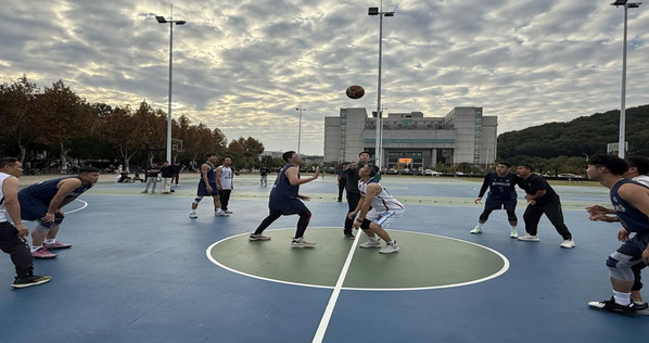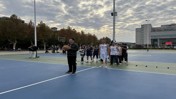 本网讯 为营造积极向上的班级文化,2025级研究生班于11月12日在校篮球场举办第二次团建活动——师生篮球友谊赛。伟德bv1946官网经理周曙为比赛开球,副经理朱施成、球类教研室主任胡安义及田广、李明明、杨坤、高永奇等教师共同参与。