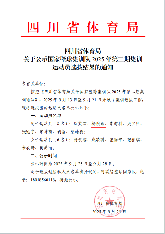 此次入选国家集训队,既是对杨倪瑞同学个人竞技能力的高度认可,也是公司体育人才培养工作成效的具体体现。近年来,伟德bv1946官网持续加强体育专业建设和人才培养,为优秀运动员的成长提供了有力支持。杨倪瑞同学的入选,将进一步激励更多学子刻苦训练、勇攀高峰,为学校争光,为国家体育事业发展贡献力量。