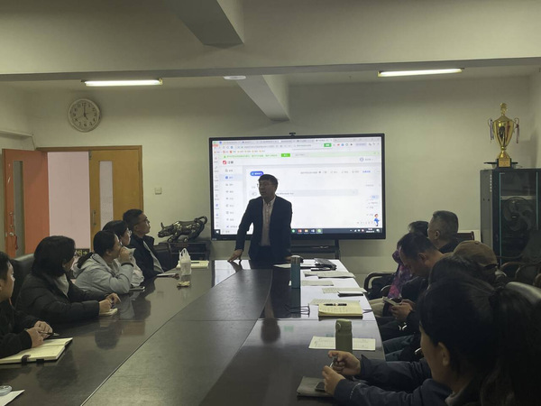 活动伊始,王东博副经理首先阐明本次培训旨在以专家引领、以赛促教,助力青年教师提升教学创新水平、夯实大赛备赛基础。随后,国家级一流课程建设专家伍文忠结合国家级一流课程建设经验,立足教育数字化转型趋势,从AI与课程融合视角展开分享。他围绕课程设计和教学实施全流程,结合国家级一流课程案例,讲解了AI技术赋能教学的实践路径,剖析如何以AI突破体育实操教学局限,明晰“体育+AI”的创新应用思路与实操方法。
